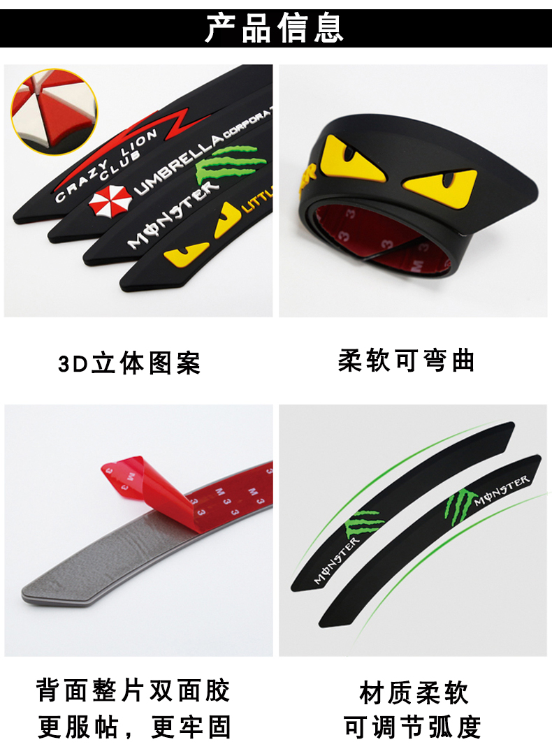 Small Monster Wheel Brow Black 2 Small Monster Wheel Brow White 2 Small Monster Wheel Brow Grey 2 Strips Pure Black Wheel Eyebrow 2 Pure White Wheel Brow 2 s