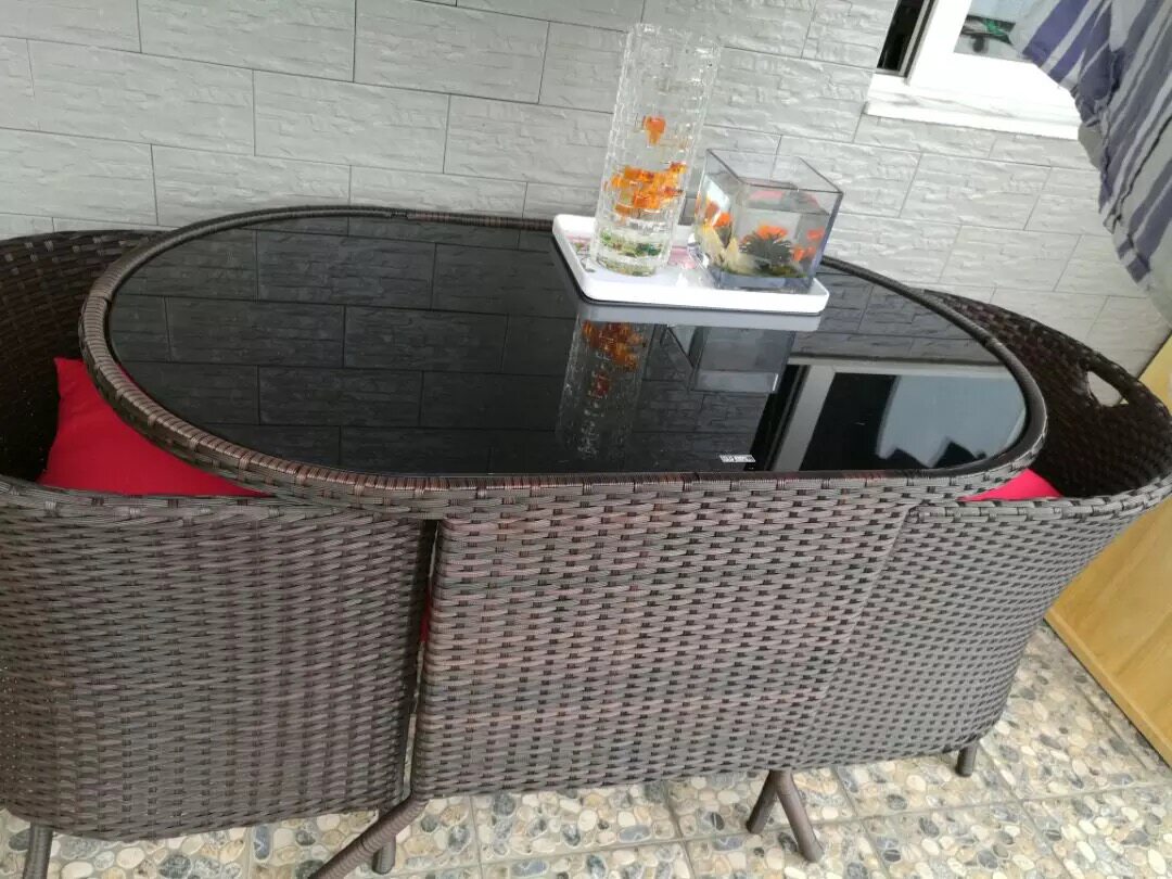 Manufacturer direct sales outdoor rattan chair outdoor milk tea coffee table and chairs combine three sets of outdoor furniture