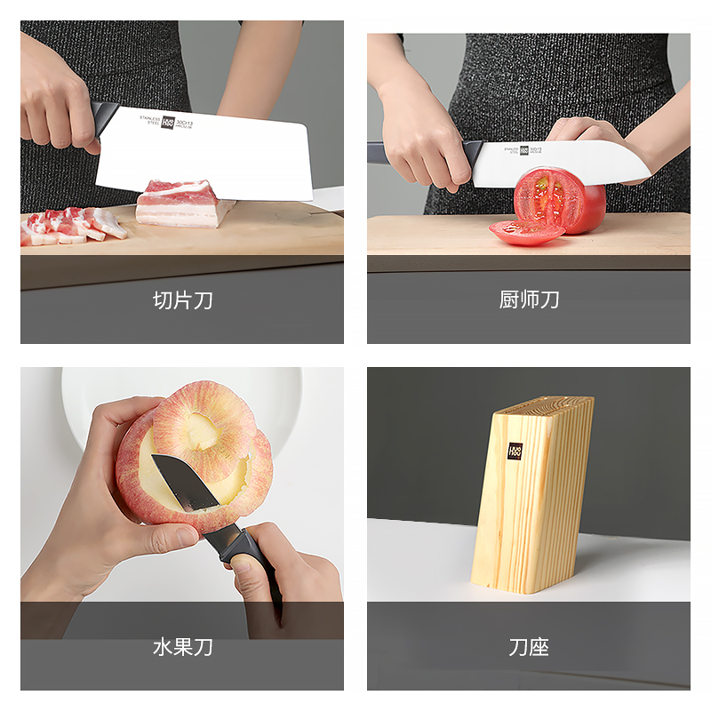Youth Edition Kitchen Knife Four-Piece Pine Knife Block Youth Edition Kitchen Knife Six-Piece Pine Knife Block Kitchen Knife Six-Piece Beech Knife Block Manual Water Milled PP Resin Handle Featured Solid Wood Knife Block