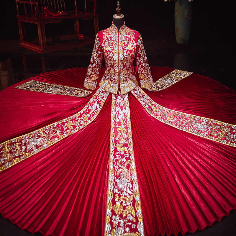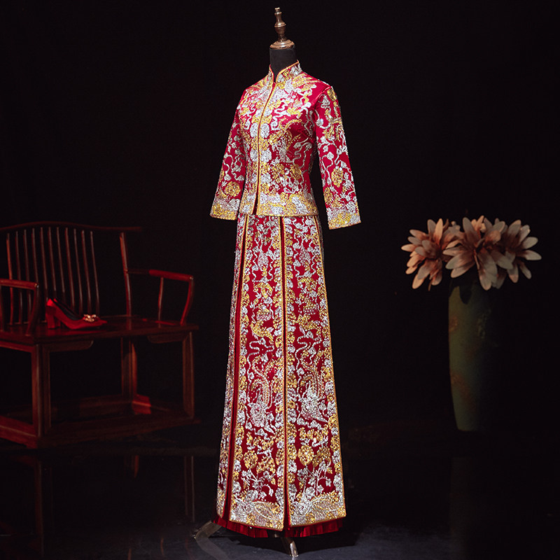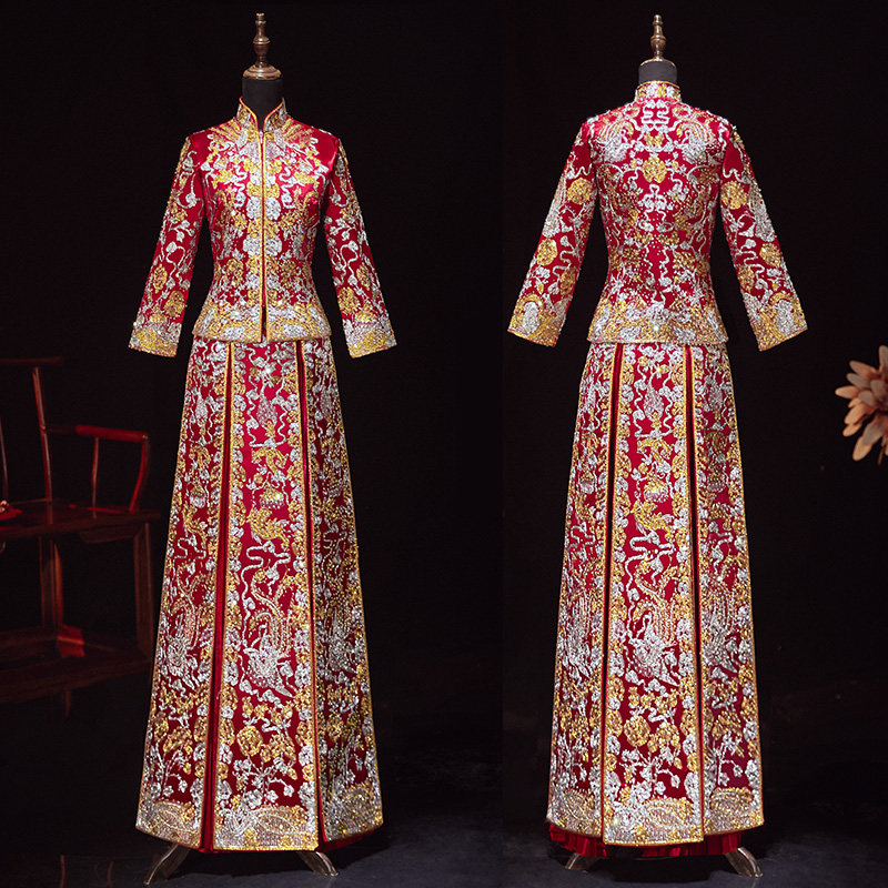 Xiuhe clothing bride 2020 new Chinese bridal clothing Xiuhe Longfeng hanging wedding dress gold embroidery show kimono female