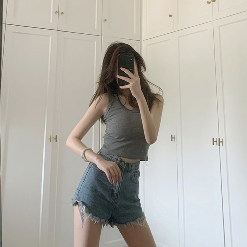 Black harness vest female inner lap summer sweet and hot girl sports obliteraturewear body slats bottom sleeveless shorts outwear