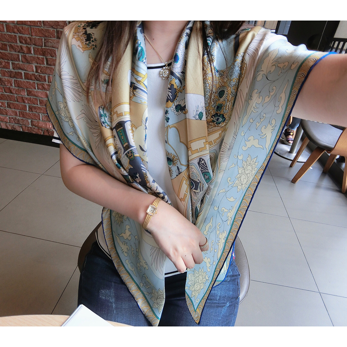 Xiaoxian silk towel female summer with sky green porcelain dressy tissue tissue tissue silk scarf shawl