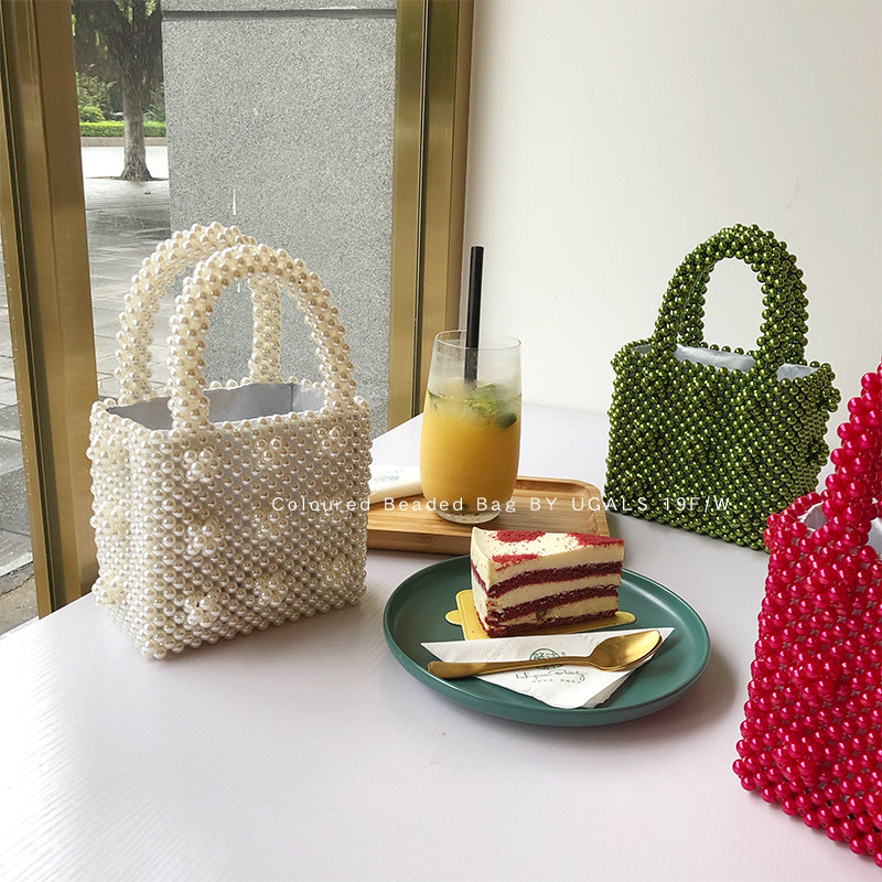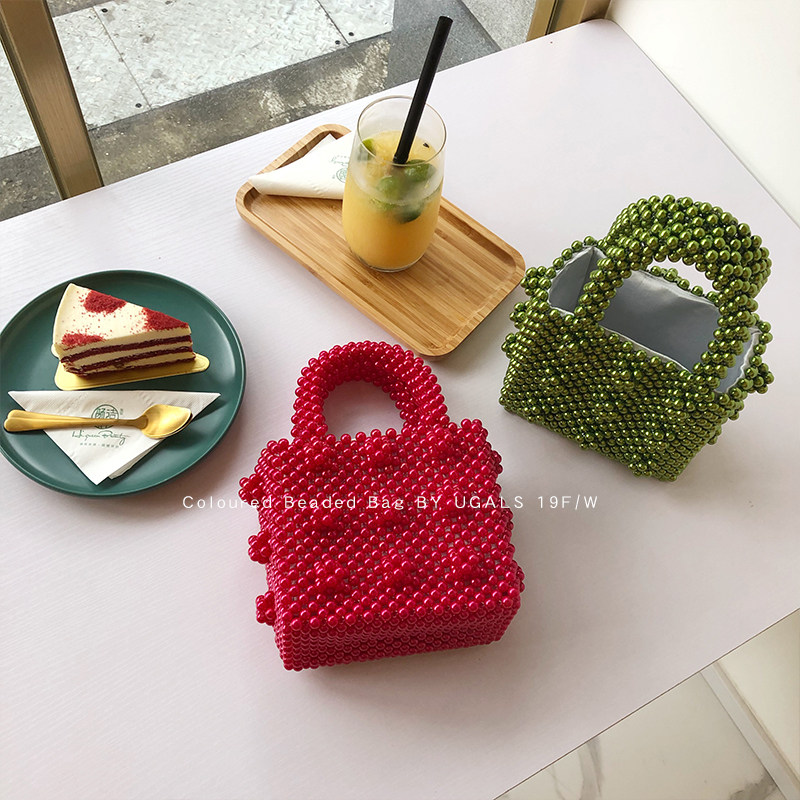 UGALS Mini Mesh Red Dinner Name Yuan Acrylic Beads Handwoven String Beads Pearl Packet Handbag