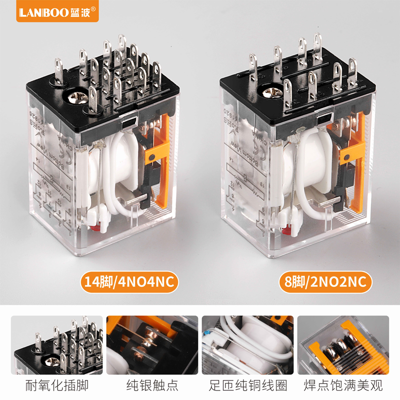 Blue Wave 8 14 foot DC intermediate relay with base 2 open 2 closed 4 open 4 closed 5A 12 12 24V 220V