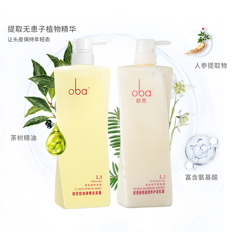 oba Oba Oil Control Fluffy Shampoo Conditioner Vanilla Fragrance Shampoo Set Supple and Refreshing 740g*2