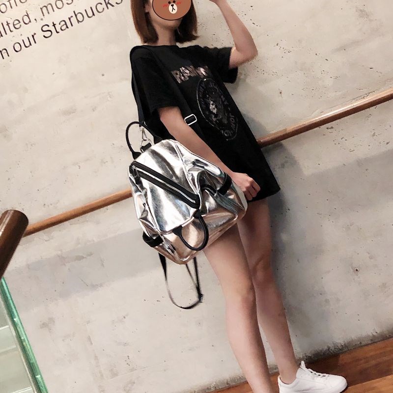 Hong Kong Tide Card Genuine Leather Lady Double Shoulder Bag Han Version 100 Hitch Bull Leather Multipurpose Bag Silver Travel Bag