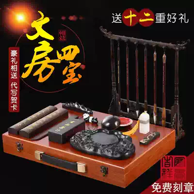 Nuoshinuo Yiran self-le Wenfang Sibao boutique set pen, ink, paper inkstone adult high-end Fulu Shouxi brush gift box Huimo inkstone town ruler contentment, commonplace beginner wolf brush and milli pen holder