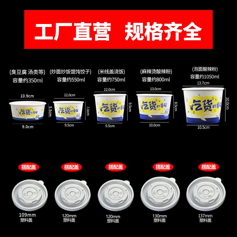Disposable bowl Paper bowl Household instant noodle bowl thickened takeaway commercial baked cold noodles hot and sour powder round packing box whole box