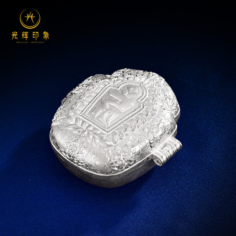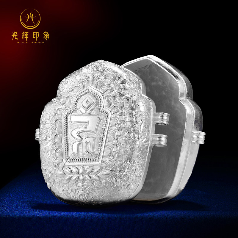 Glorious impression S990 sterling silver seed word Gawu box pure hand-carved pure silver pendant pendant pendant for men and women