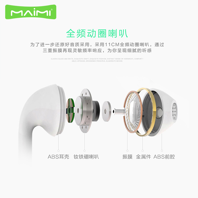Mai Jing H2S in-ear mobile phone 3.5mm headphones stereo bass line control call noise reduction music headphones 6S