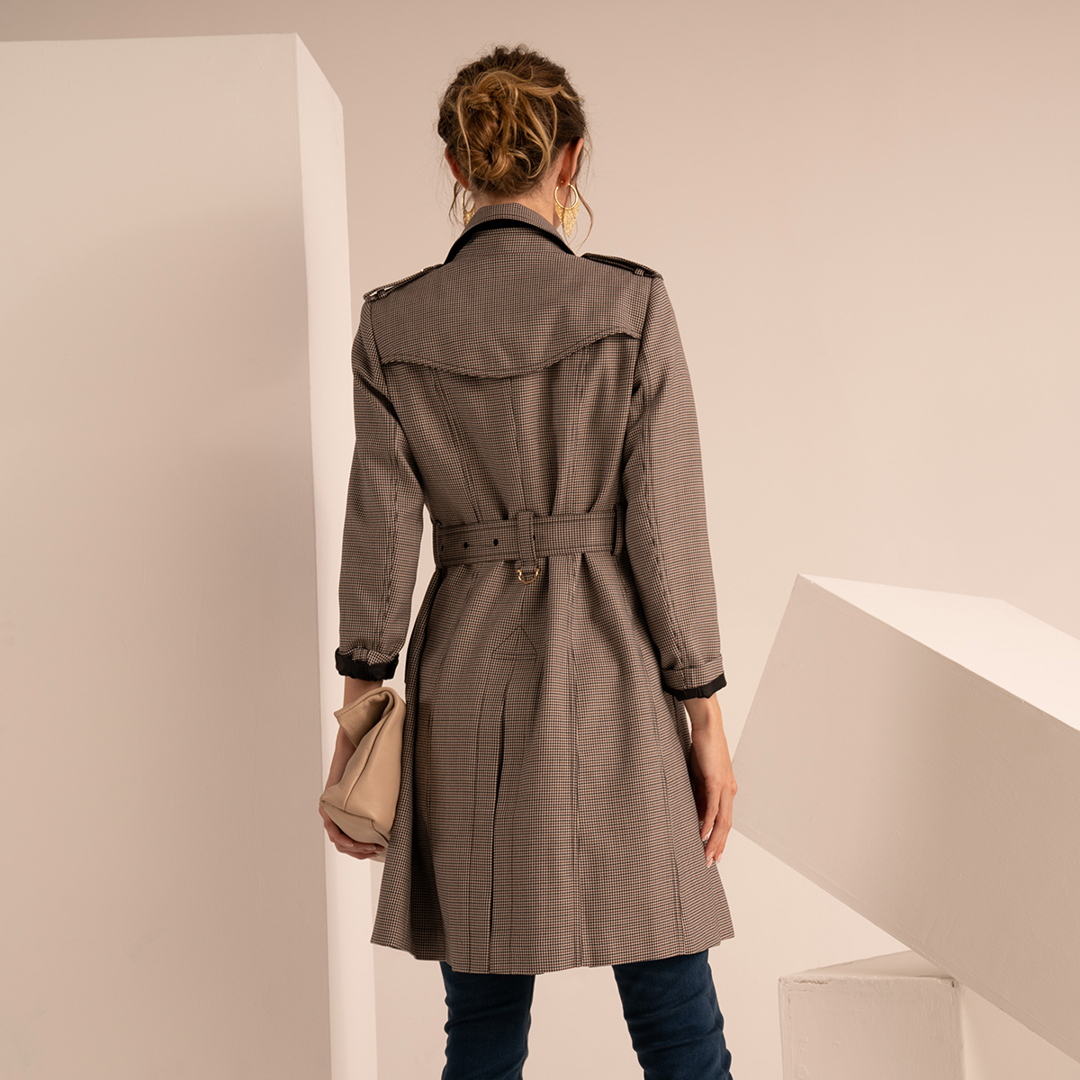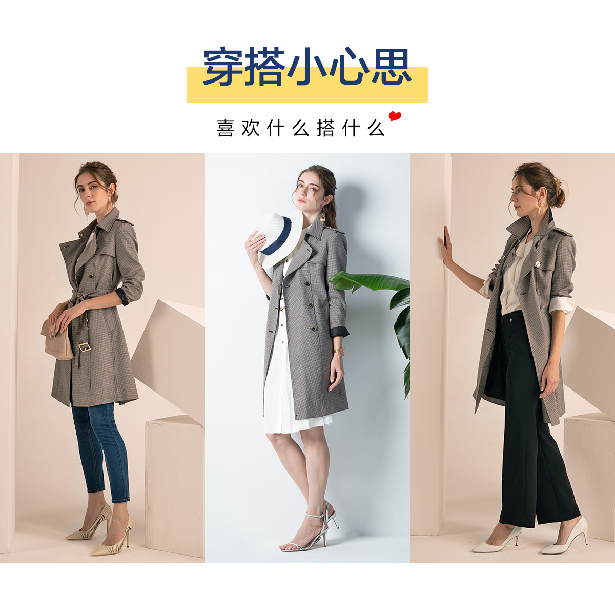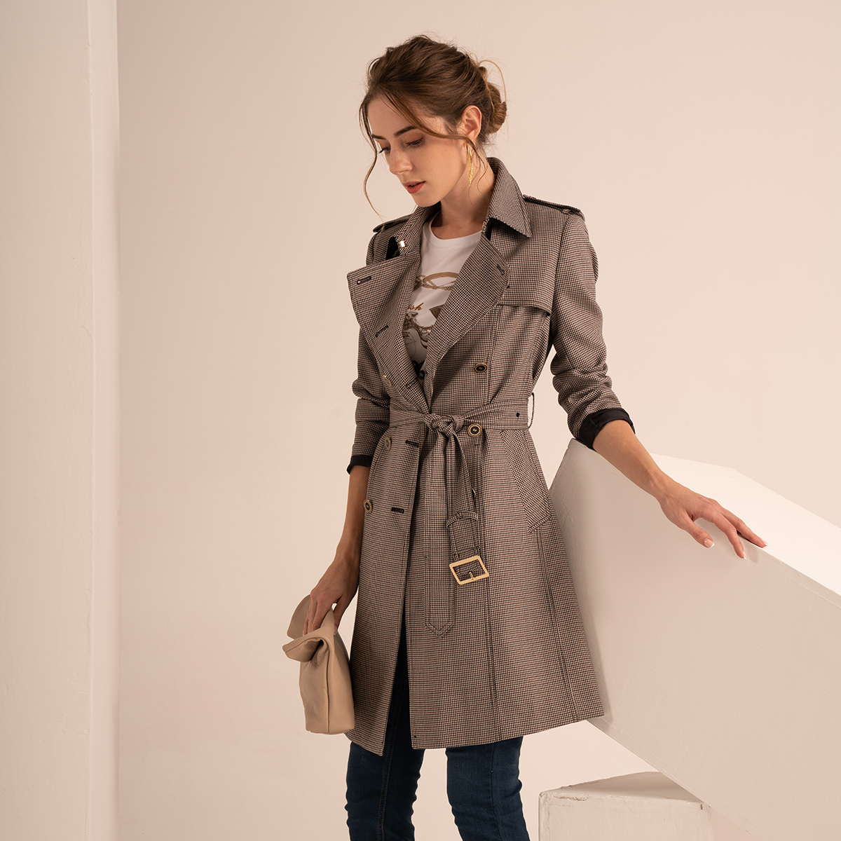 SCOFIELD Women's Spring And Autumn Check Double-Breasted Belt Mid-Length Trench Coat Women's SFJT98904L
