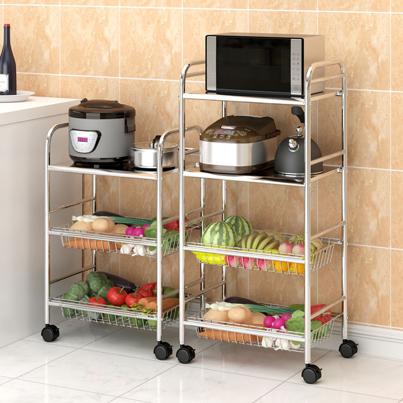 Kitchen Vegetable Shelving Ground Type Multilayer Microwave Oven Rack 304 Stainless Steel Oven Containing Layer Shelf Fruit Basket