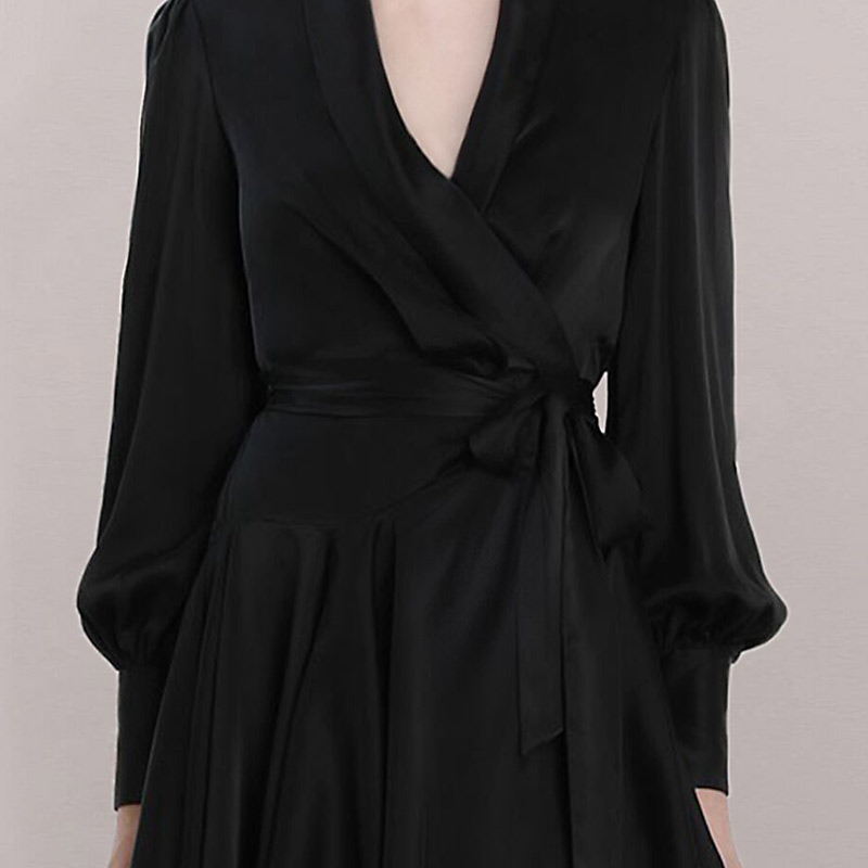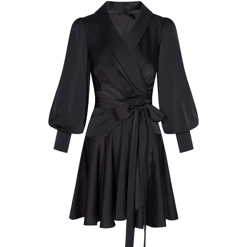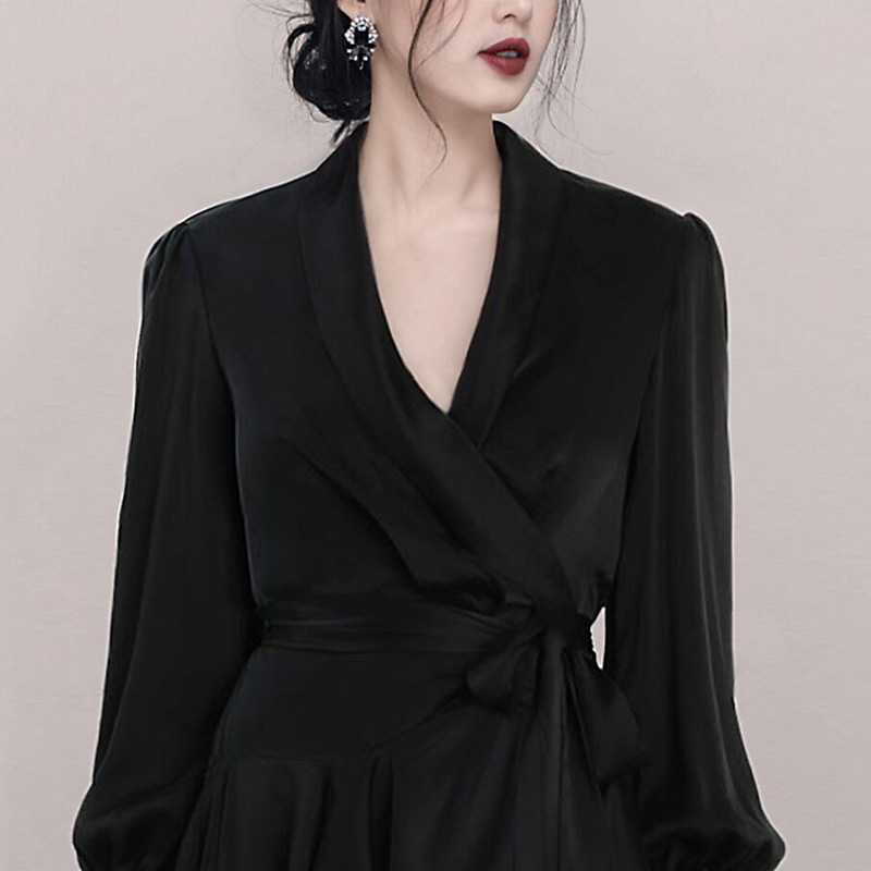 Thai boomer name Yuanyu temperament small black dress French style retro skirt black V collar lacing design feeling little crowdsourced dress