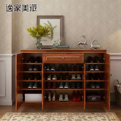 Chinese shoe cabinet solid wood strip modern simple foyer cabinet American large-capacity shoe cabinet entrance cabinet open door storage cabinet