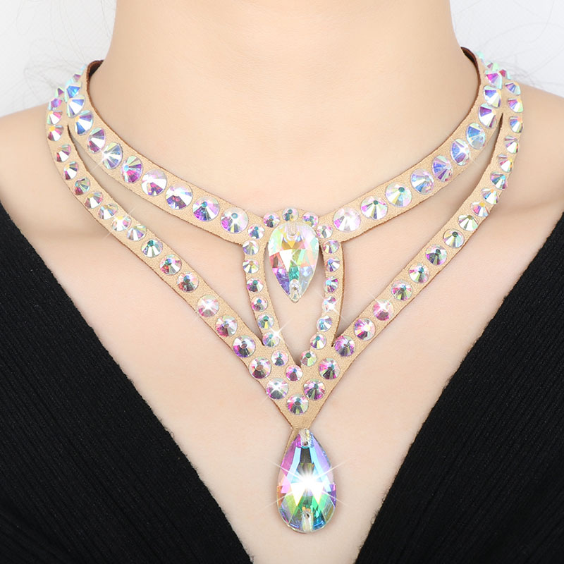 Modern dance necklace Collar Dance competition performance Diamond-set neck decoration National standard dance accessories Waltz social dance neck flower