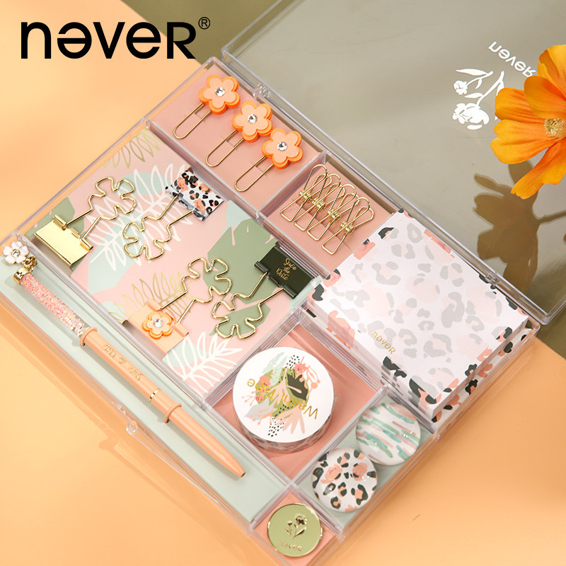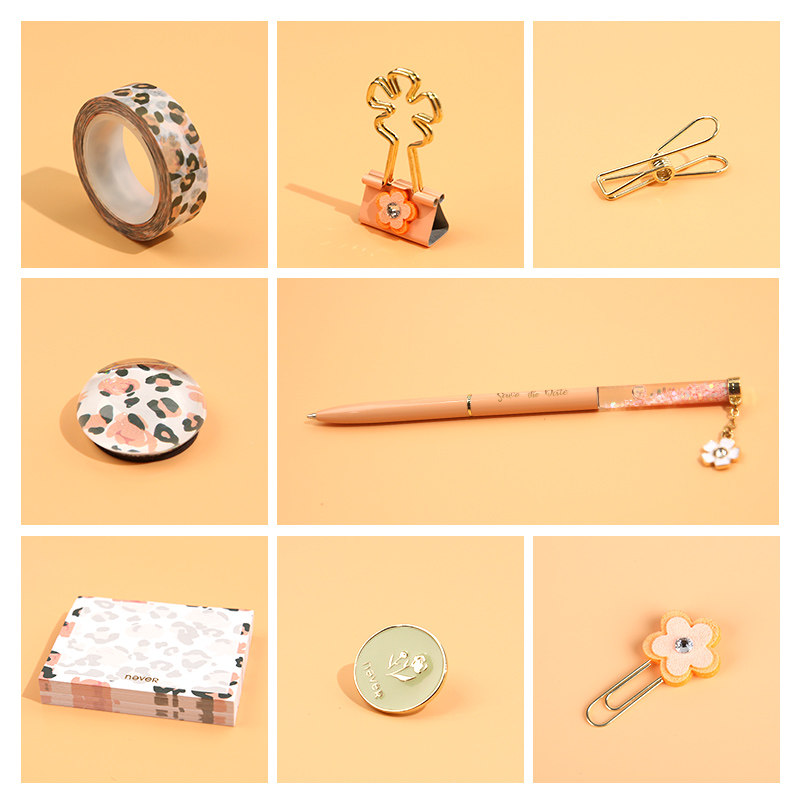 neverBAO WEN flower stationery set gift box hand account making tools and paper tape ticket holder magnetic buckle metal pen