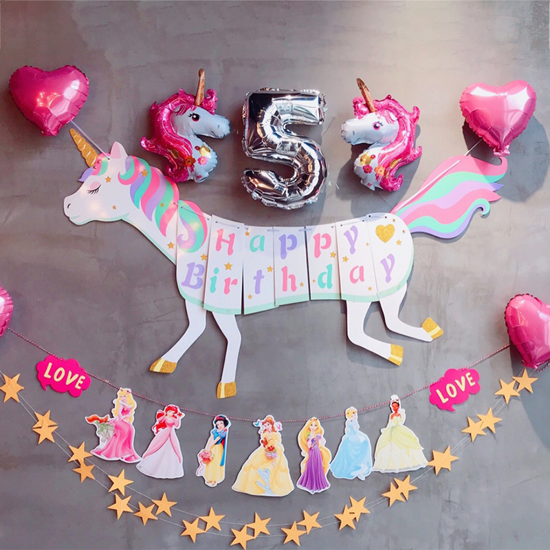 Children's birthday party baby one-year-old decoration creative unicorn theme background wall layout small mara flag banner