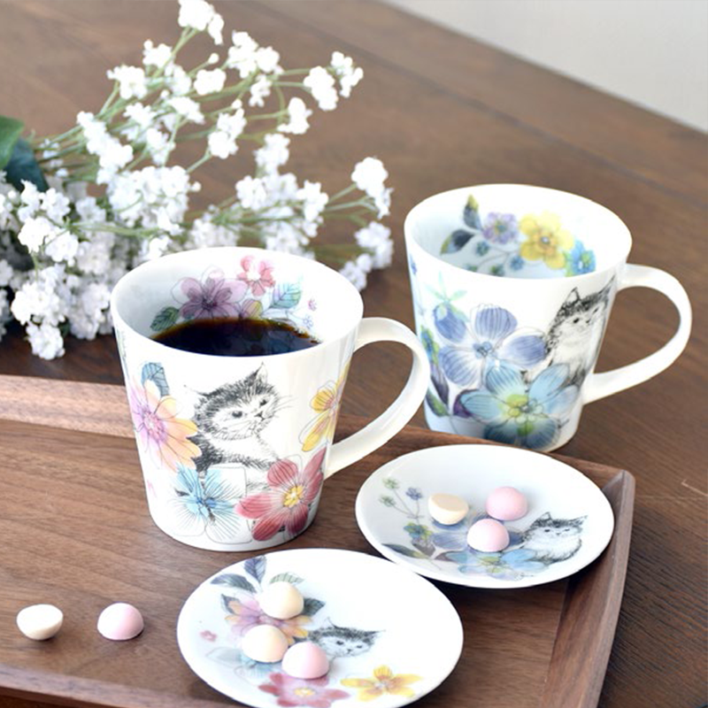 Black cat mug color cat mug spot pink cat mug spot white blue cat mug spot fish coffee spoon unpacked sitting cat spoon unpacked lying cat