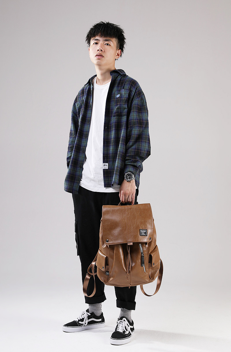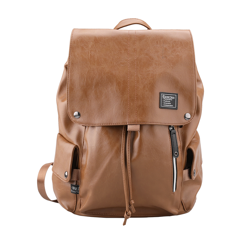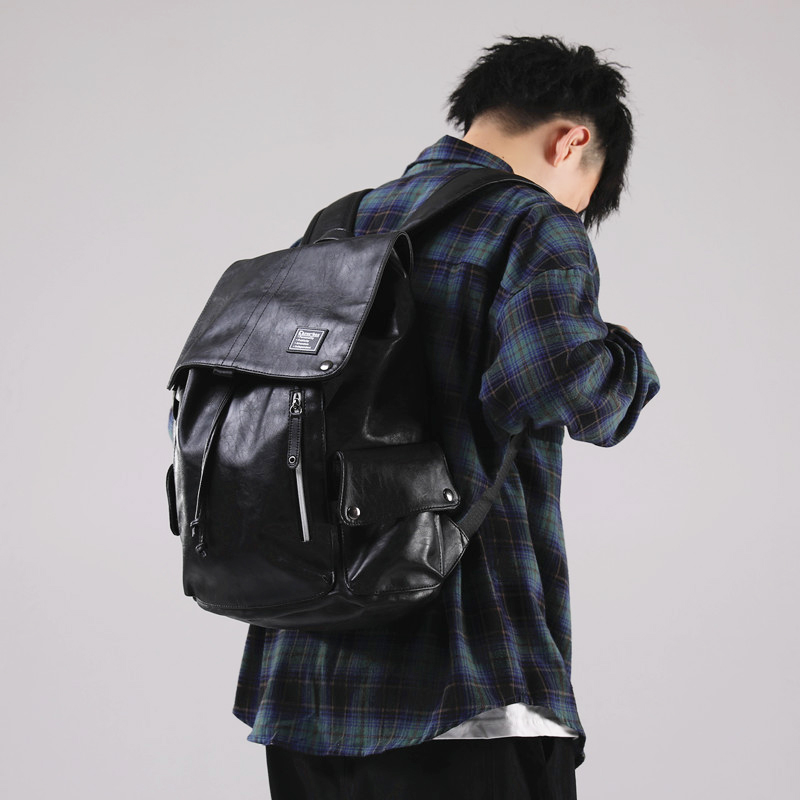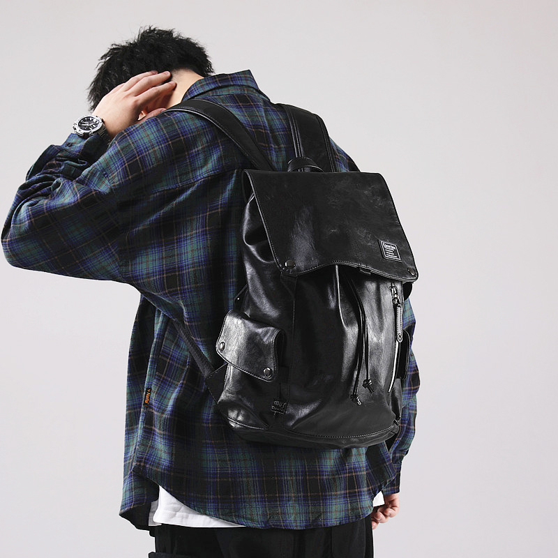 BOTB Japanese vintage drawstring with lid backpack boys' and girls' large-capacity backpack academy trend leather school bag