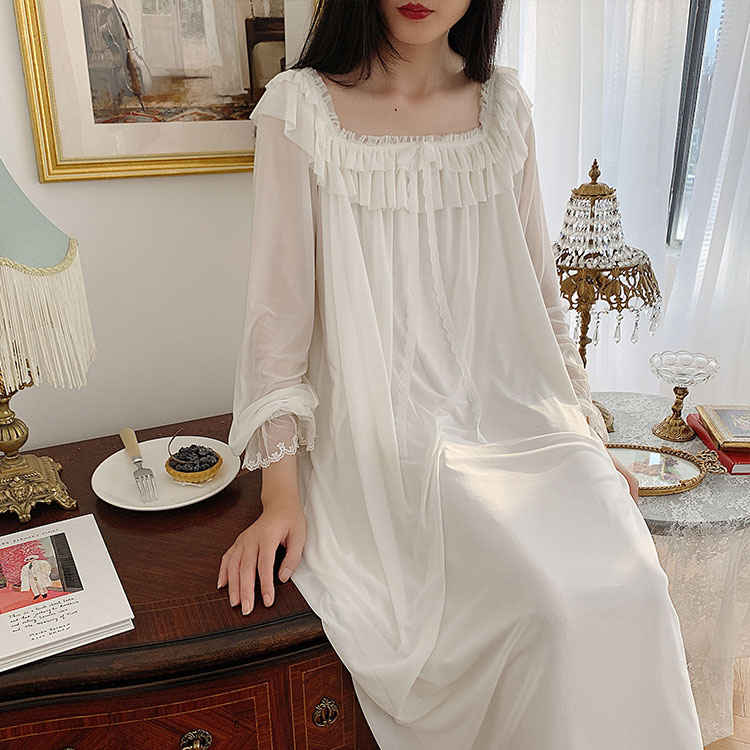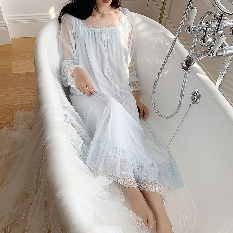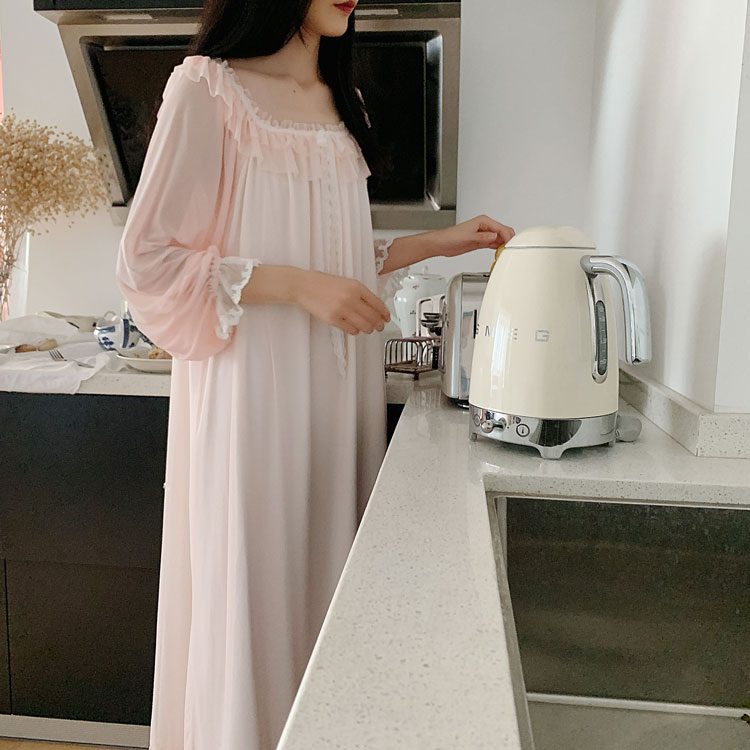 pinkgoddess court nightdress spring and autumn retro lace home service princess wind ice silk pajamas women autumn and winter
