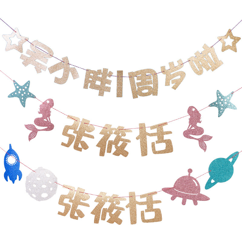 Customize 1 word (5 words up to beat) Custom one-year drawing flag 1 string custom full moon pull flag 1 string custom 100 days pull flag 1 string name pull flag 1 string-Mermaid's name pull flag 1 string-unicorn name