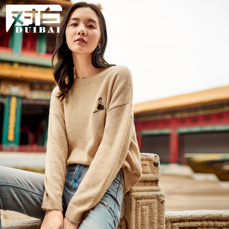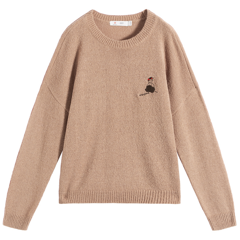 (National Wind Series) For white relaxation Don't make embroidery design Feel Sweater Women's Autumn New Fashion Down-shoulder-knitted Cardigan