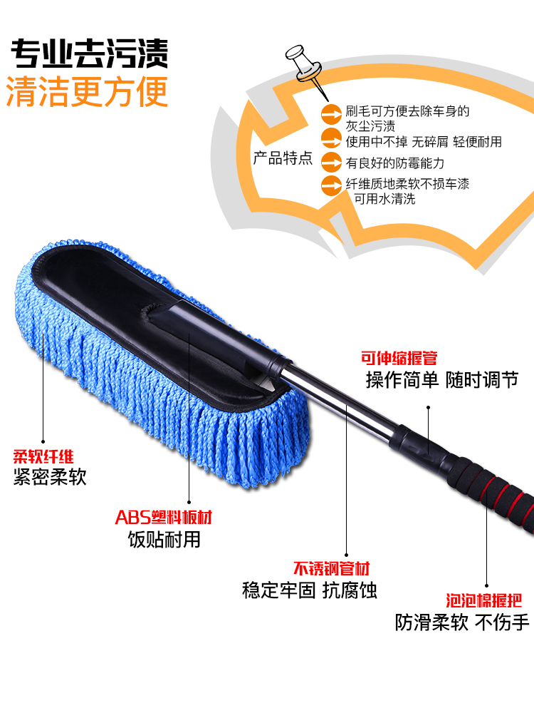 Steam car telescopic waxing mop washing and dust removal car Cleaner Car Scrub Car Wash Car Wash Car Wash Wax Brush Clean Tool Car Supplies