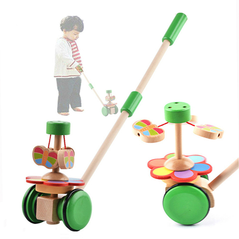 Baby wooden baby walker cart cartoon single rod duckling push for 1 - 2 year old baby