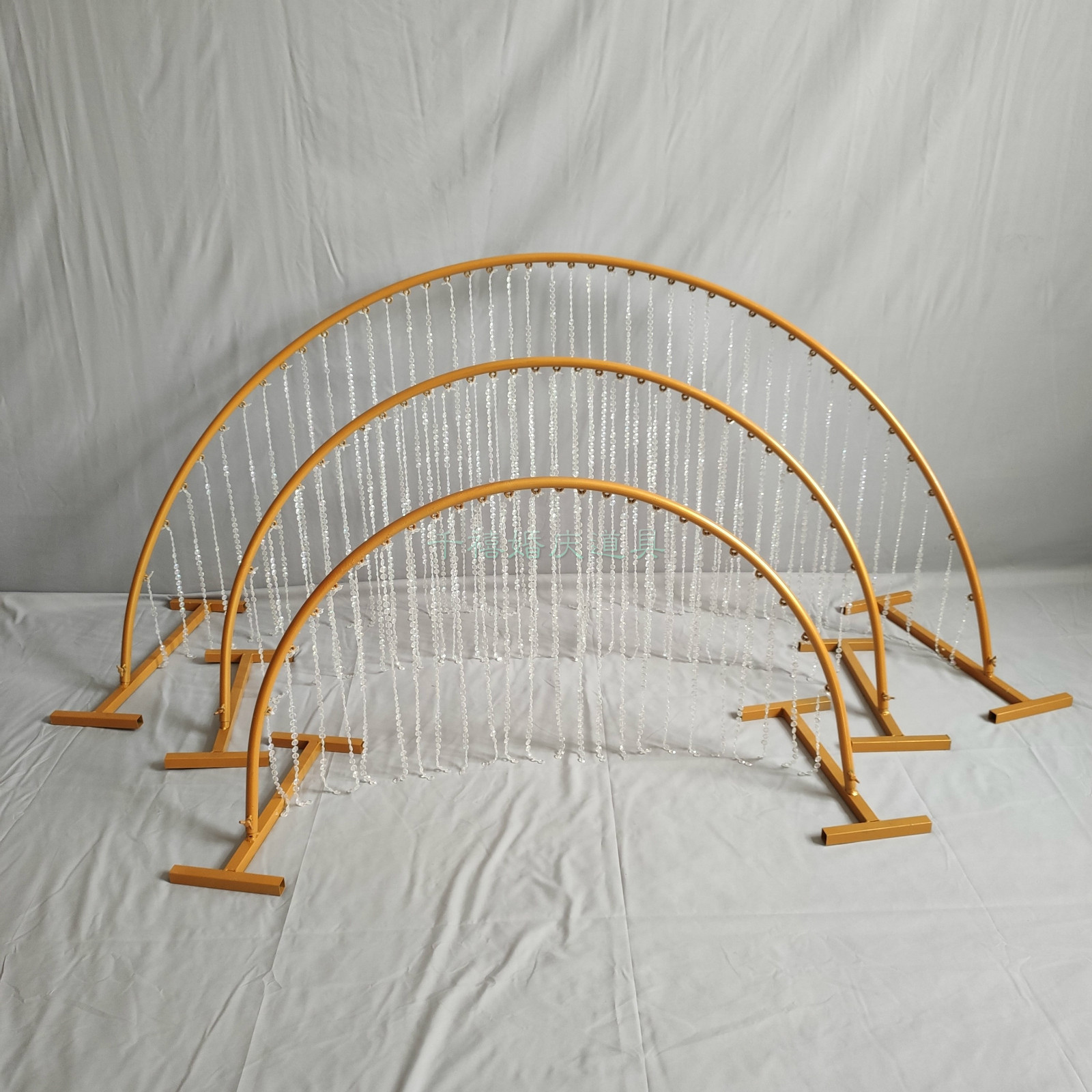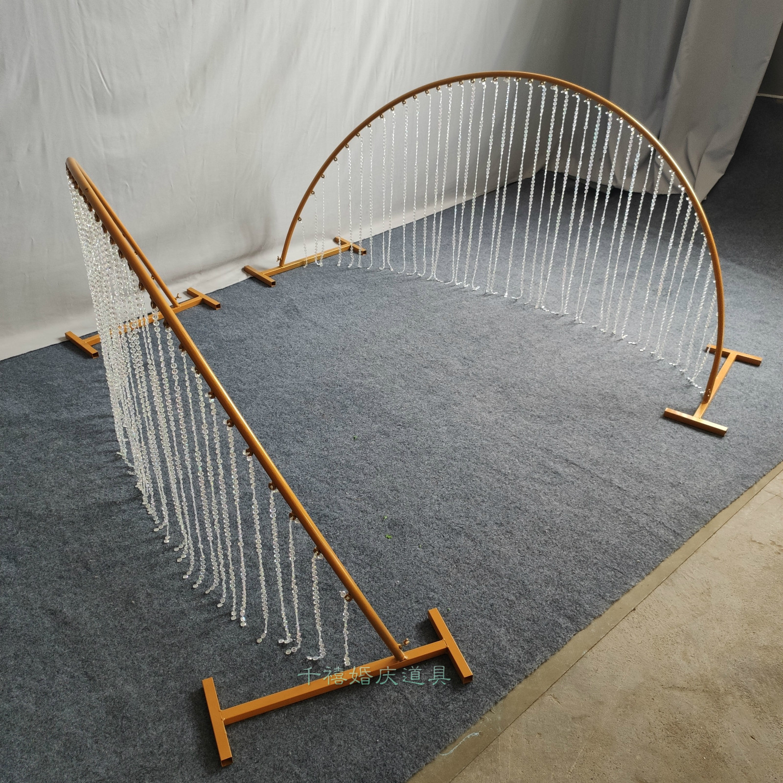 New wedding iron arc Crystal road guide fence stage decoration fence golden flower stand bead curtain geometric ornaments