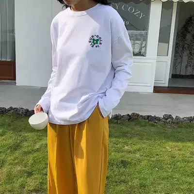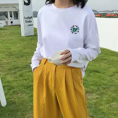 2019 autumn cec pure cotton long-sleeved t-shirt women's bottoming shirt loose Hong Kong flavor super fire top ins the same student outfit
