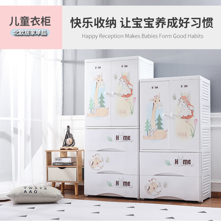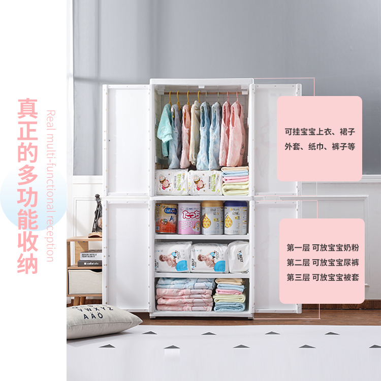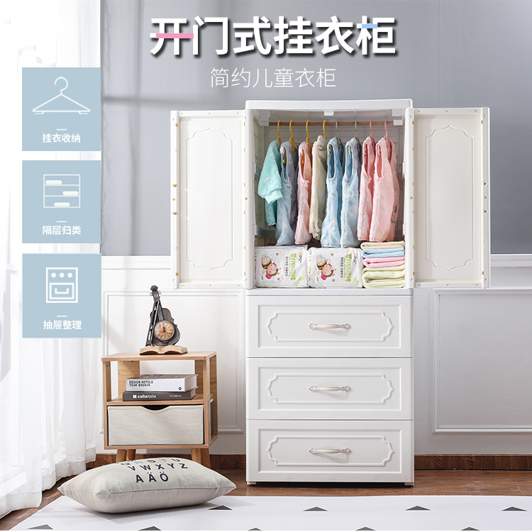 Plastic door storage cabinet Baby baby wardrobe Children's wardrobe thickened storage simple hanging type finishing cabinet
