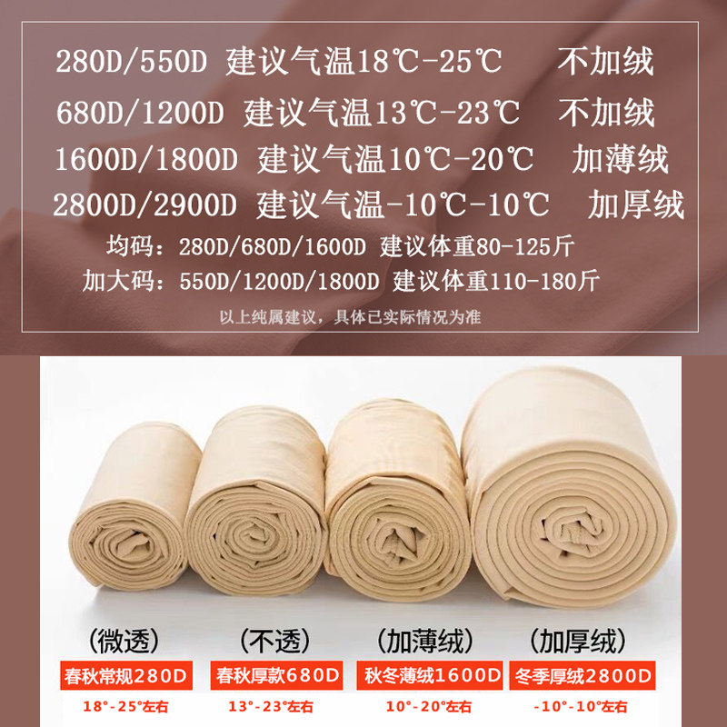 680D Thick Pressed Version (8-18℃) 800D Thick Pressed Version (13-23℃) 1600D Autumn/Winter Thin Velvet (8-18℃) 180D Micro Pressed Thin Version
