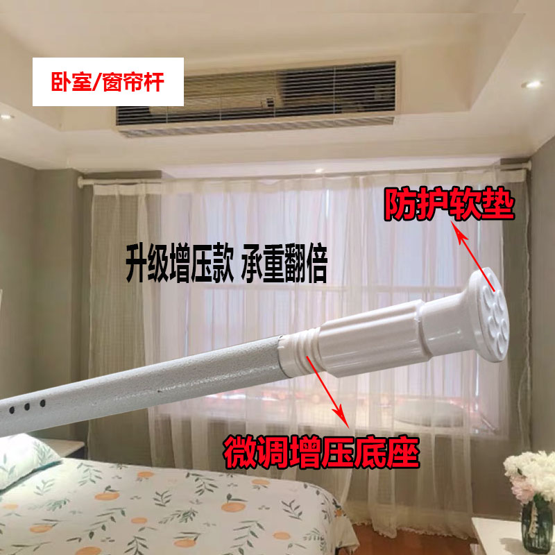 Curtain rod Roman rod Hole-free bedroom living room hook-up black retractable rod Shower curtain rod Single rod drying rod
