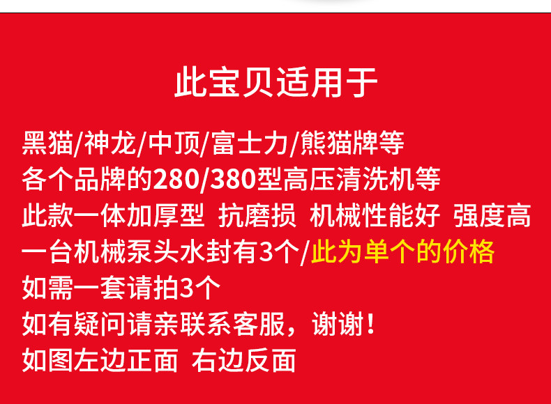 380280 Black cat type high pressure cleaning machine car washing machine parts water sealing ring seal ring O - type rubber mat