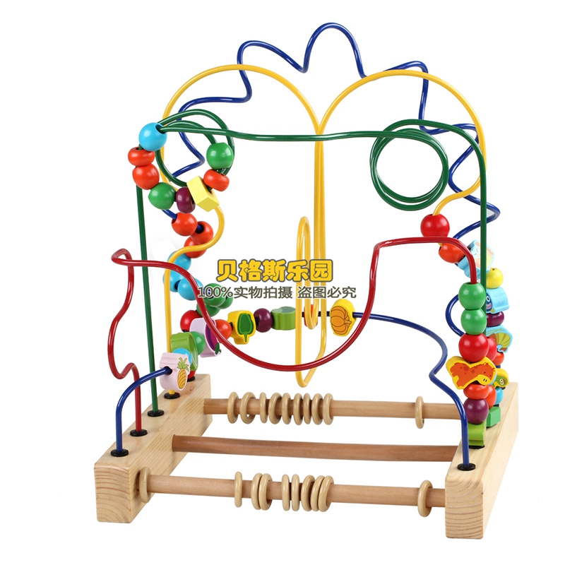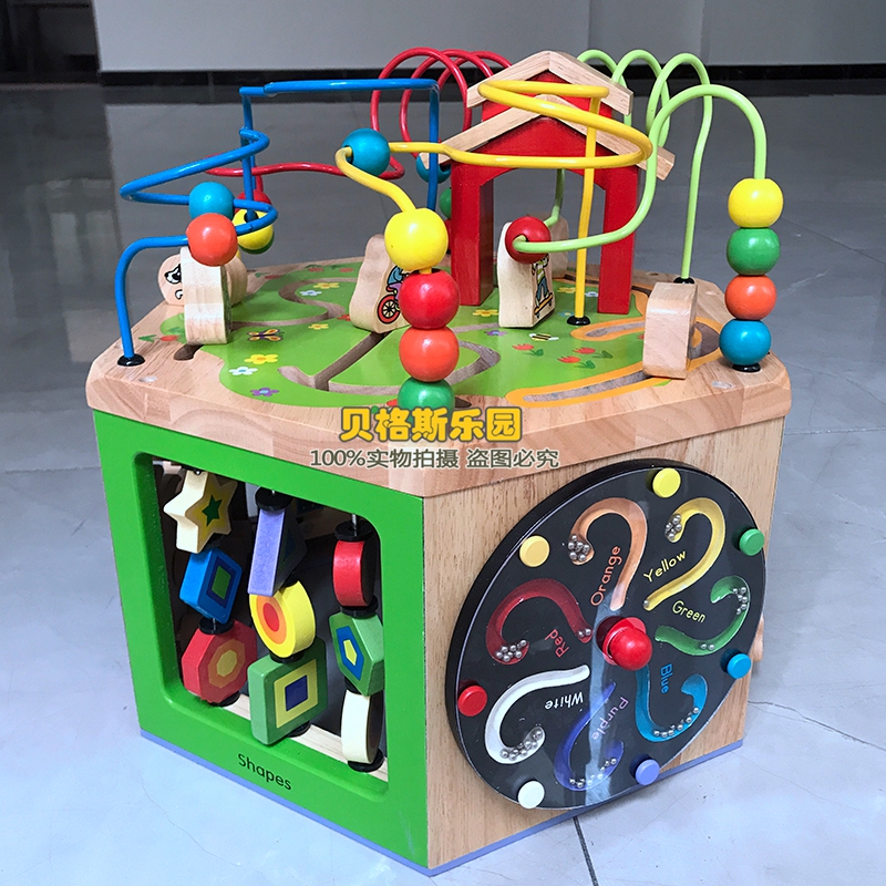 Wooden multifunctional large wrap pearl Pepper box on all sides Puzzle Early Teach Children String Beads Count Matchmaking Wooden Toys