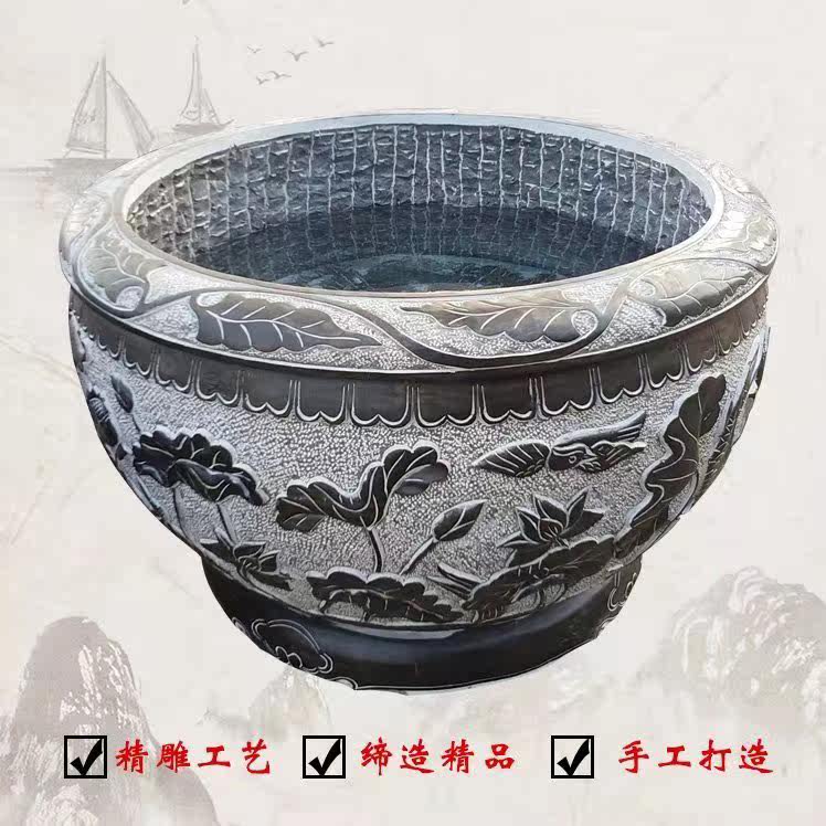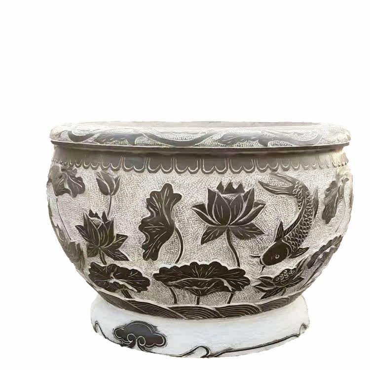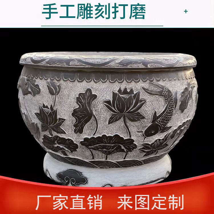 Stone carving green stone fish tank flower pot imitation ancient lotus flower cylinder outdoor old stone groove semi-circle stone cylinder fish farming outdoor flowing water swaying pieces
