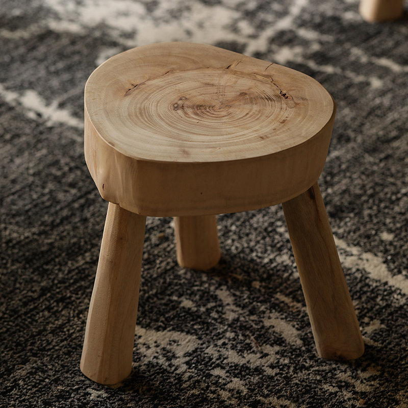 Original ecological stool camphor wood low stool Nordic solid wood shoe changing stool dining table stool children's stool flower stand balcony round bench