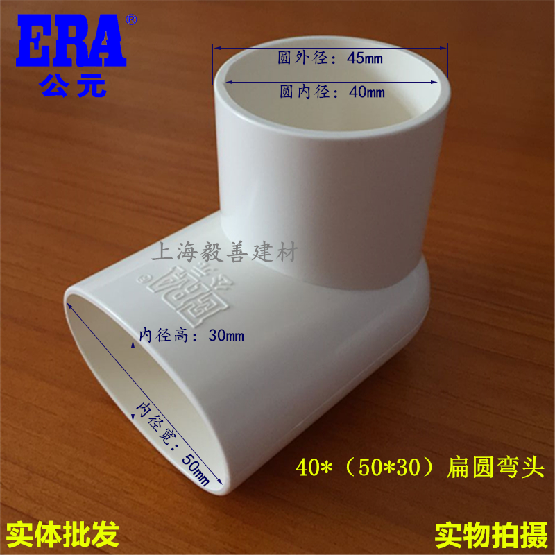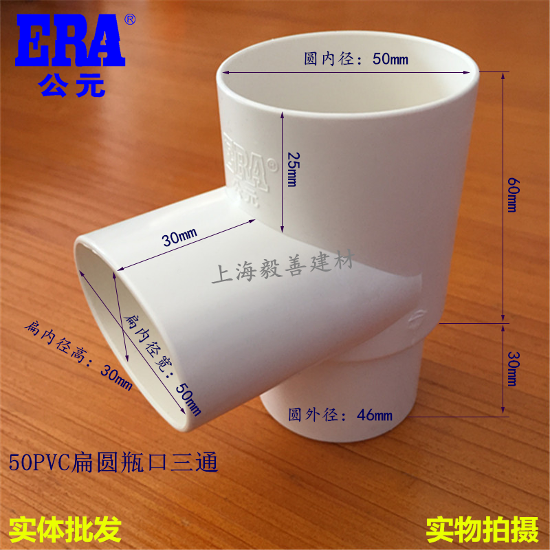 CE PVC50 * 30 flat direct flat round 90 degrees 45 degree elbow 50 flat pipe shift flat sloping three-way flat bottle tee