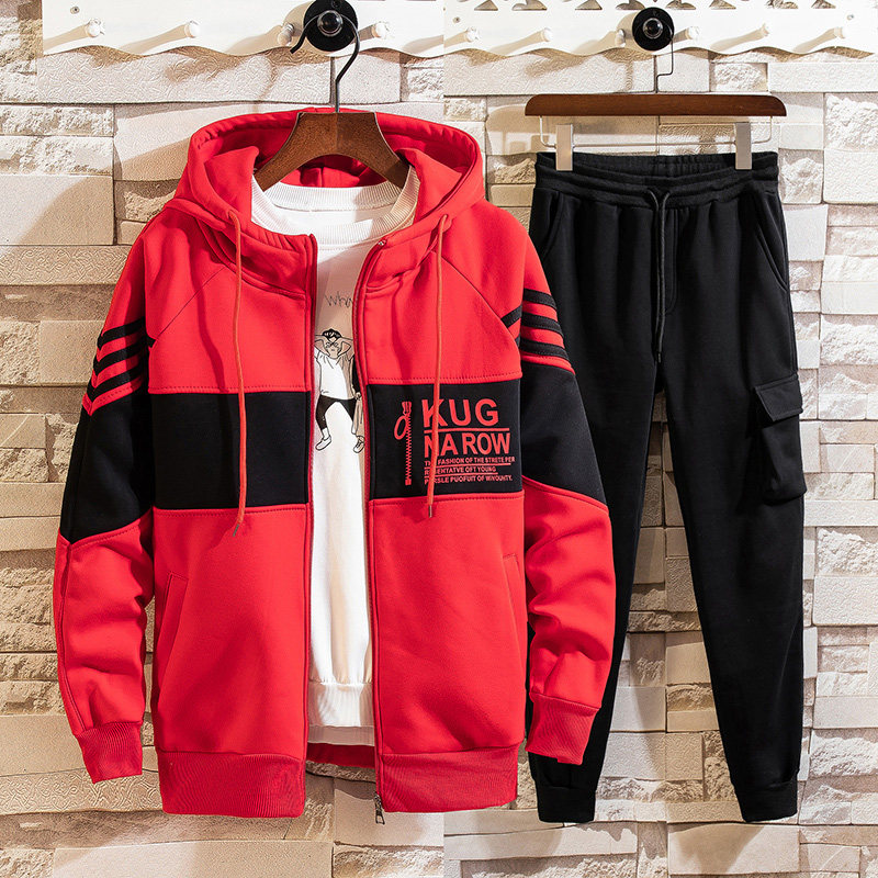Boys suit spring and autumn 2021 new 12 boys cardigan two-piece set 15-year-old sweater middle child sportswear men
