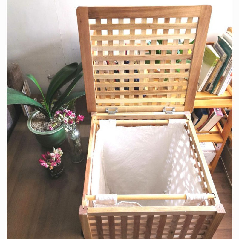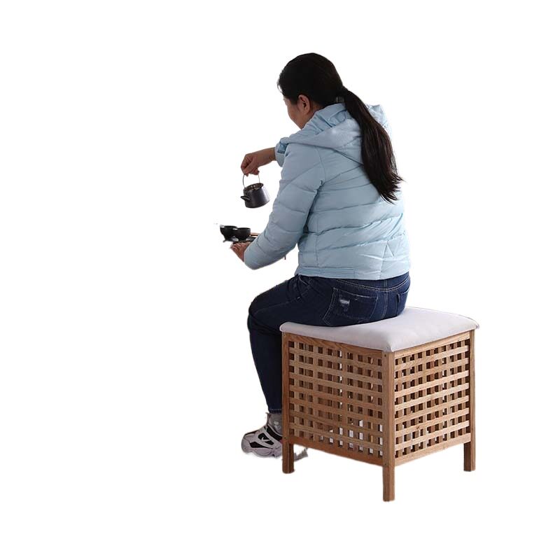 Nordic style catalpa wood grid solid wood box storage box storage box can sit cloth stool portable shoe stool