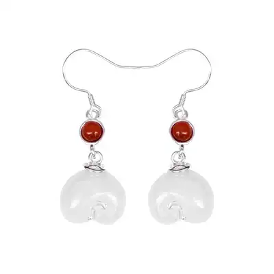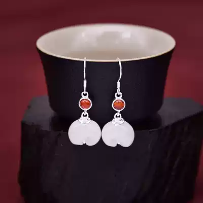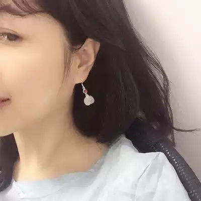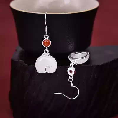 Hetian jade elephant earrings female sterling silver face thin fashion simple cute personality 925 silver jewelry ear hook earrings earrings