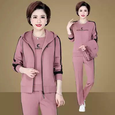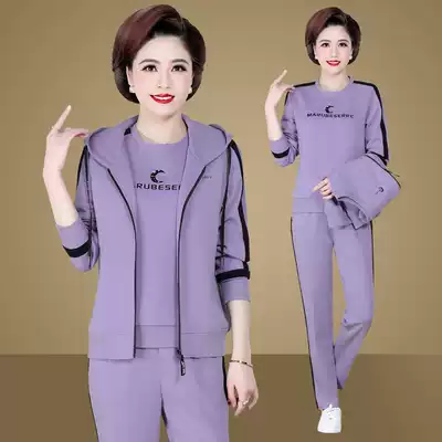 Middle-aged sports suit women's three-piece set 2021 new mother autumn coat old man women's casual clothes loose