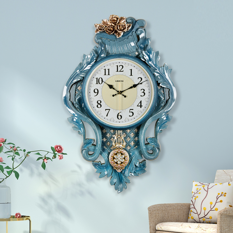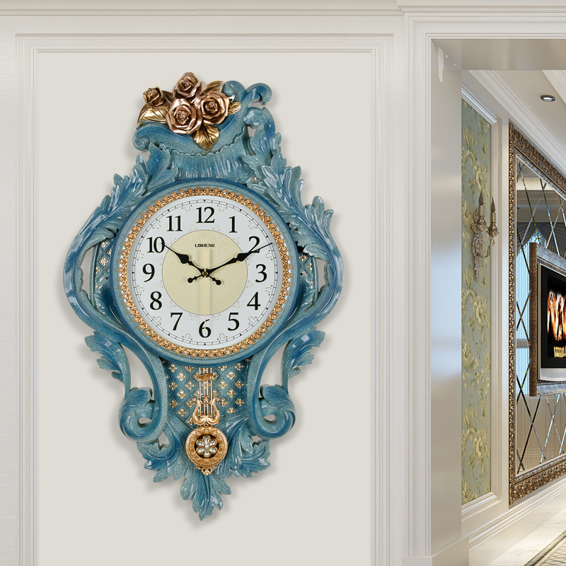 Living room hanging bell mute large size European style light lavish watch fashion Home creative bedroom bell Decorative Clock Wall-mounted Watch