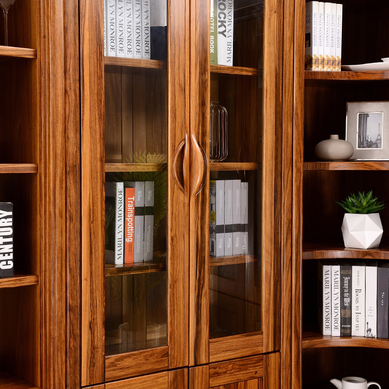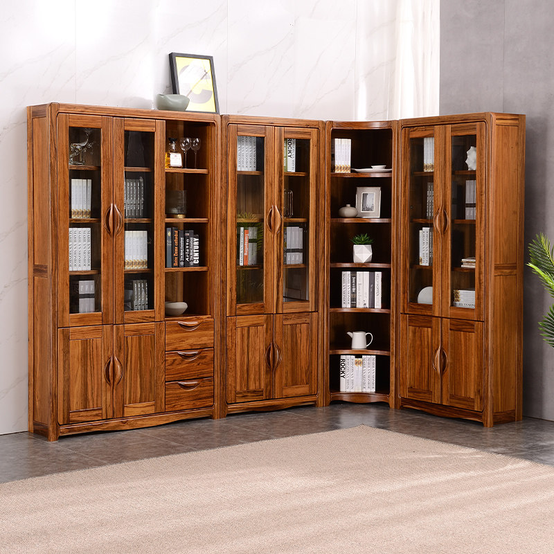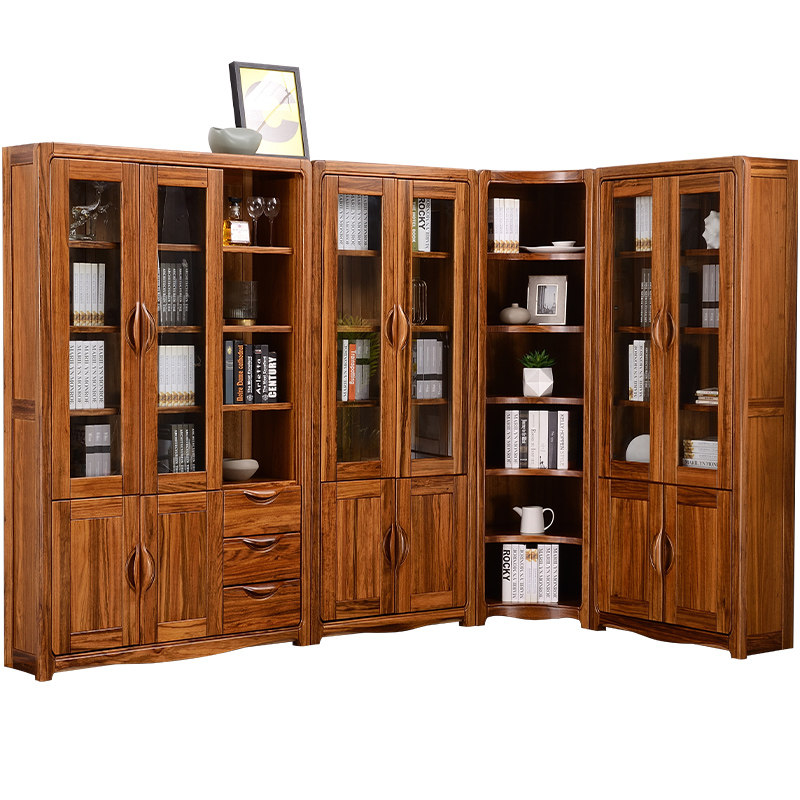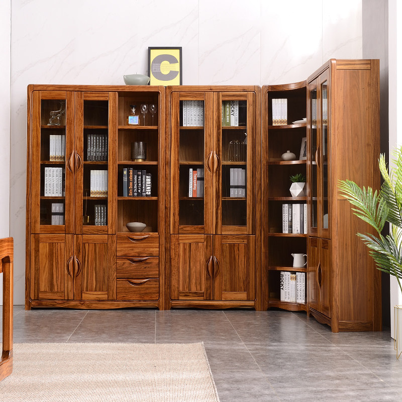 Ebony wood bookcase wall all solid wood bookshelf combination Chinese corner bookcase display cabinet modern study simple glass