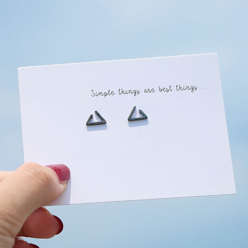 Lukewarm wind S925 pure silver simple hollowed-out triangular ear pin female Han version personality to raise earthy hole temperament 100 hitch
