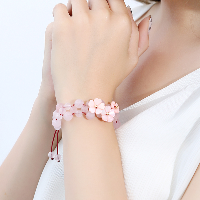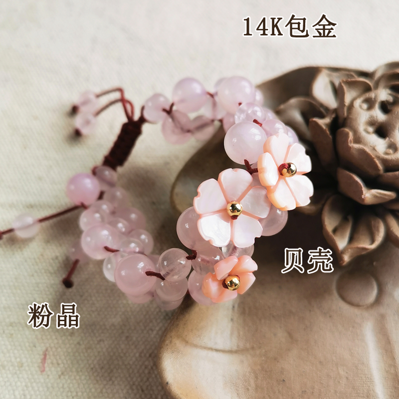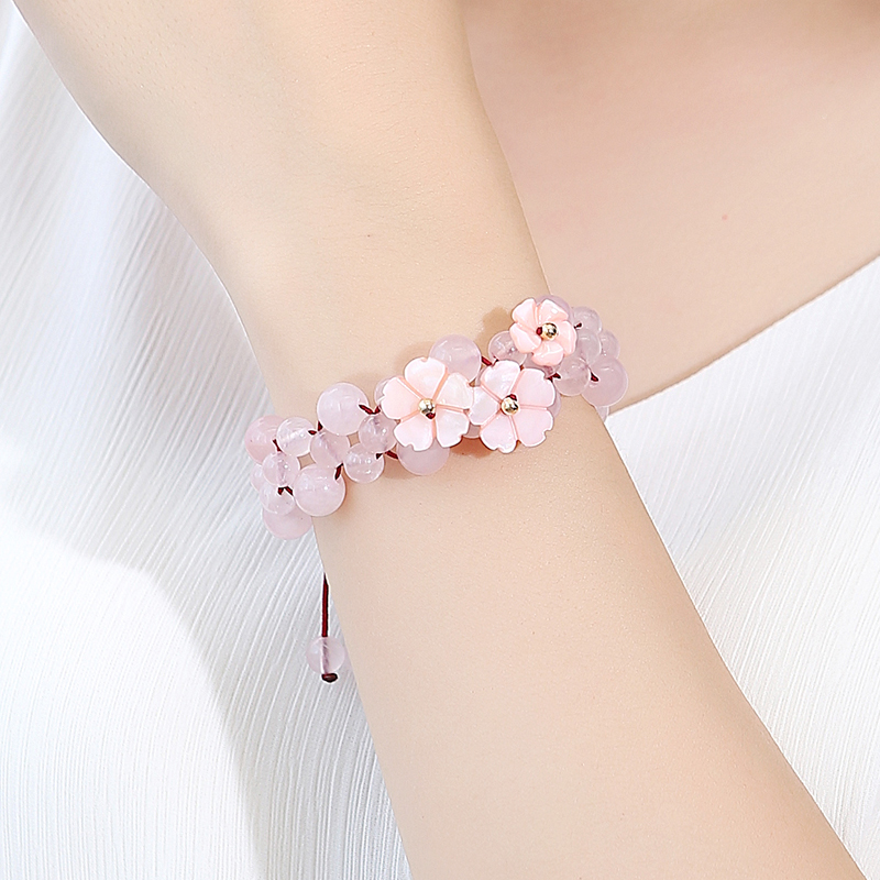 Pure Ornament Powder pink crystal adjustable hand alchemy string wide female small frescoed flowers students Bathyology Fan