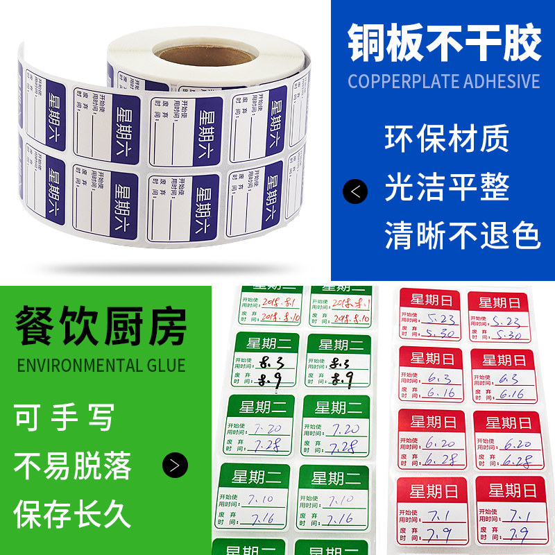 Jay hotel food label paper 30x 30mm 2000 roll week label sticker coated paper school hotel kitchen catering management food time card label paper week label