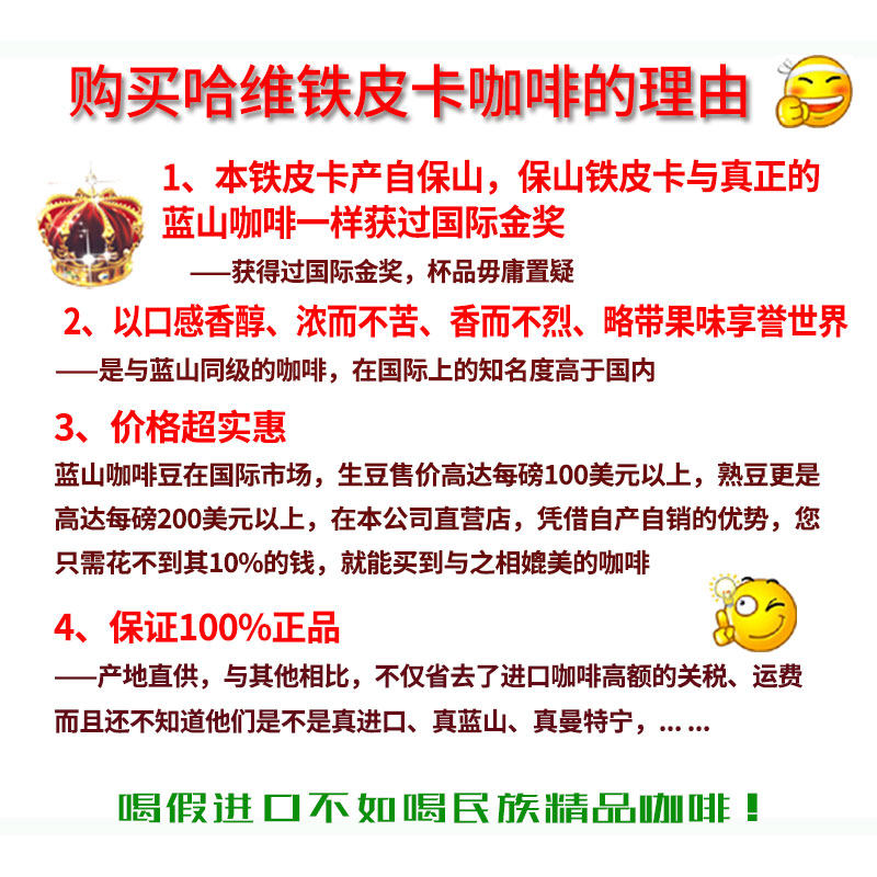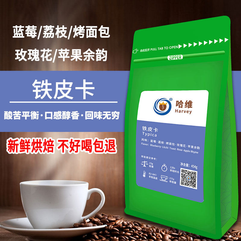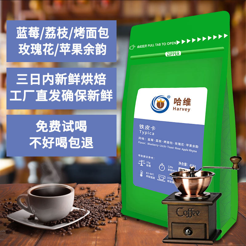Harvey single Yunnan Baoshan Tiepica black coffee beans can replace freshly ground black coffee powder hand-brewed 454 grams