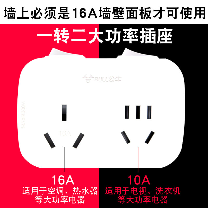 Bull Extended Socket GN-9323D Converter 16A Plug to 16A+10A High Power One to Two Water Heaters