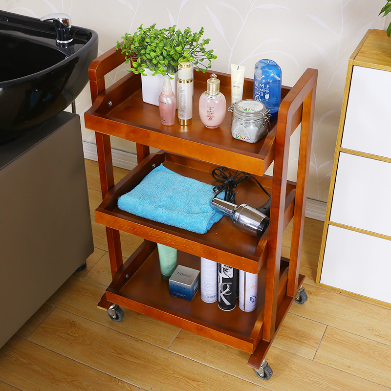 Solid Wood beauty cart hairdressing tool cart three-layer with drawer beauty shelf hair salon beauty salon trolley